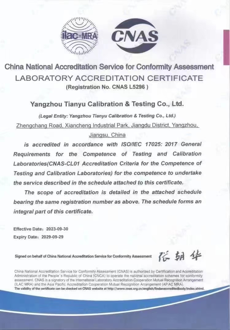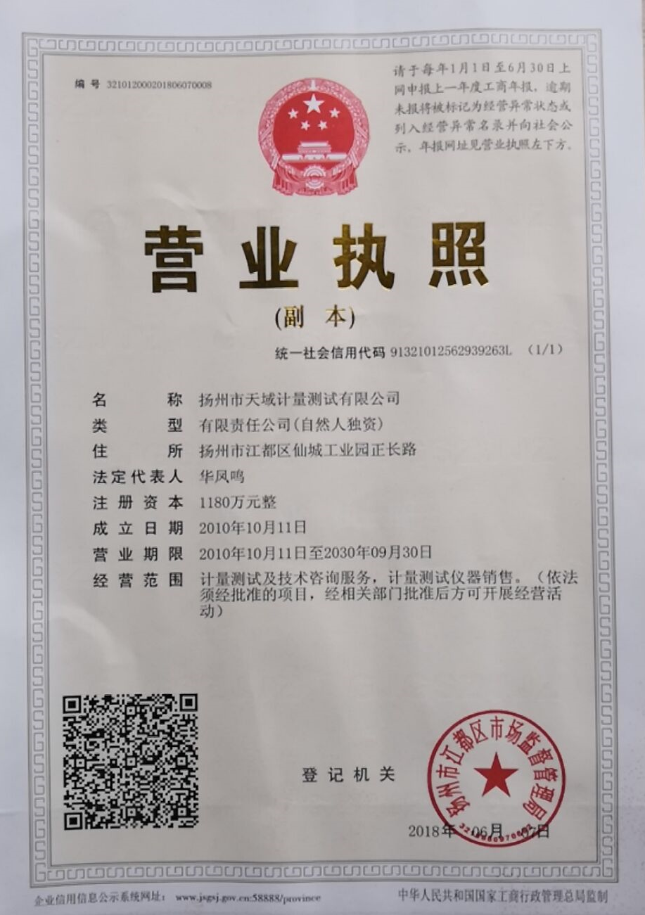 揚(yáng)州市天域計(jì)量測(cè)試有限公司,坐落在交通便利的揚(yáng)州市江都區(qū)仙城工業(yè)園,成立于2010年10月,2011年11月正式獲取中國合格評(píng)定國家認(rèn)可委員會(huì)認(rèn)可(授權(quán)),注冊(cè)號(hào):CNAS L5296。近幾年的發(fā)展,實(shí)驗(yàn)室已具備了較大規(guī)模,并形成了集計(jì)量器具檢測(cè),計(jì)量技術(shù)咨詢和計(jì)量器具銷售為一體的專業(yè)化技術(shù)機(jī)構(gòu),客戶覆蓋蘇南、蘇北、和浙江,安徽部分地區(qū),客戶群總量達(dá)到了上千家企事業(yè)單位。實(shí)驗(yàn)室建立健全了一套較為完整的內(nèi)外部質(zhì)量管理體系,至今未發(fā)生糾紛和客戶投訴事件。